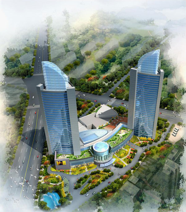 项目类型:酒店建筑 欧冠买球下载年代:2010年 建设地点:上海市长宁区 总面积:113820M2 欧冠买球下载说明:虹桥宾馆和银河宾馆是紧邻内环高架和延安路高架交叉口的姐妹楼,地处长宁区涉外贸易区内,位置优越,属虹桥商圈的中心区,但由于该两宾馆属于八十年代建筑,外观和内部设施都有许多不适应之处,这次改造重点是,一在保留二幢高层建筑本体结构的前提下,变高层外立面为通透玻璃造型,使其更为现代和时尚。二是拆除综合部裙房和设备用房,重建四层裙房,其中一,二层为精品商业和休闲餐饮配套服务设施。三层用于大堂,四层为屋顶泳池,花园和露天咖啡吧。通过改建两个酒店将在该地域形成一对十分抢眼的标志性建筑。