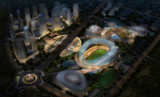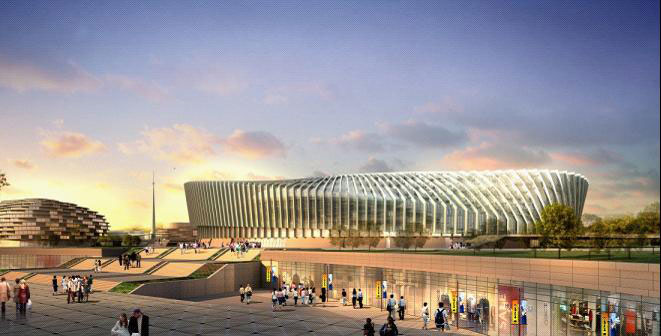 项目类型:公建 欧冠买球下载年代:2010年 建设地点:江苏省宿迁市 总面积:225553 M2 欧冠买球下载说明:宿迁体育会展中心位于宿迁市北面骆马湖边的运河文化城东部,是该文化城的一轴两带,两心十区中的重要组成部分,占地43.33公顷,规划建设总建筑面积22.56万平方米,其中包括3万座位的主体育场5万M2,会展中心5万M2,6000座位的体育馆4万M2,2000座位的游泳馆1.5万M2,配套中心3.4万M2。建成后将是一个集体育,展示,会议,商务,休闲,娱乐等多功能的体育综合体。在单体欧冠买球下载中,主场馆的造型灵感来源由神奇莫比乌斯线,寓意体育精神永无止境,生生不息。会展中心设于体育场南侧,共四层,并设有训练场及健身房,总建筑面积51000 M2。体育馆,游泳馆和配套中心均在体育场北侧,交通组织合理,景观造型大气。