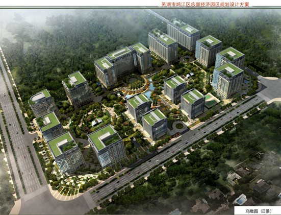 芜湖市鸠江区总部经济园区项目位于安徽省芜湖市鸠江区东部,南至鸠兹大道(万春路),东至富明路,北至永镇路,西侧为高压走廊,规划用地面积94269.94平方米,总建筑面积330388.44平方米,该区域是芜湖市城市总体规划发展的重点方向之一。此次中标方案打造了一个构筑新型、特色鲜明的园林式、高品质、资源充分共享、文化和谐融合的总部型经济园区。