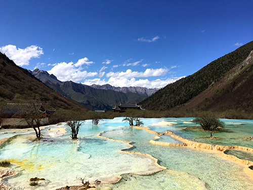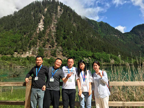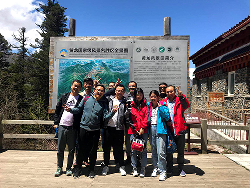 | 2018年5月23日,筹划了大半个月后,我们欧冠(中国)公司10名员工踏上了飞往成都的美妙旅程。在经历了一个小时的班机延误以及3个小时的飞行后我们终于到达了心中的天府之城—大成都!到达酒店放好行李,一行人简单吃完晚餐就休息了,为第二天的游玩做好充分的准备。 第二天途经都江堰-汶川-茂县-松潘县后,于下午两点我们抵达黄龙风景区! 黄龙海拔接近4000米,在导游诉诸可能发生的危险后,我们一行怕死之人全买了媲美神仙水的含氧水。索道上山,走着下山,全程大概4个小时左右,虽还是会有轻微的高反,走一台阶歇三歇,还是被这大自然的美景所震撼。众多的钙化池池水清澈见底,五光十色十分漂亮,还有森林、峡谷、雪山等众多的自然风光,不愧为“人间瑶池”。