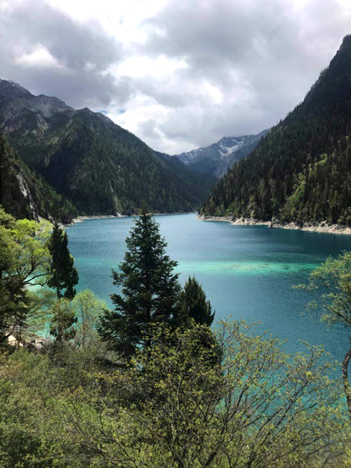 第三天一早,我们便乘上了景区内专车小巴正式进入了九寨沟风景区。由于在2017年8月8日的地震中,九寨沟受到重大损毁,即使在经过了大半年的维护后,九寨沟能够开放的景点依旧有限。诺日朗瀑布就在当年的8月10日下午,发生垮塌,昔日的诺日朗瀑布,海拔2365米,宽270米,高24.5米,是中国大型钙化瀑布之一,也是中国最宽的瀑布,86版电视剧《西游记》的片尾就是在这里拍摄的。诺日朗瀑布在藏语里面的意思是雄伟壮观的瀑布。它呈多级下跌,宽达140米的水帘从两山间飞出,直泻百尺山崖,形成罕见的森林瀑布。然而此时我们只能在脑子里想象它昔日波澜壮阔的画面了。 长海,海拔3060米,长约五公里,宽约六百多米,面积达到93万平方米。长海旁边的山峰终年积雪,四周森林珠翠,站在长海观台上看去,蓝天白云,皑皑峰雪尽收眼底,感觉山和天互相连接在一起,没有距离,长海是九寨沟海拔最高,湖面最宽的海子,湖水湛蓝,树木苍翠,倒影水中,静谧而美丽。