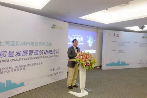 2019年11月22日,以“科学编制建筑造价指数,助力绿色建筑高质量发展,推进建筑行业可持续发展”为主题的“绿色建筑高质量发展暨建筑指数论坛”在国家会展中心成功举办。 上证指数反映股票价格的走势,建筑指数反映建筑造价的走势。建筑指数对建筑业的发展具有重要意义,宝山区建筑学会院士专家服务中心、欧冠(中国)欧冠买球下载集团院士专家工作站魏敦山院士领衔开展了宝山区民用建筑造价综合指数(简称建筑指数)的研究工作,已取得阶段性成果,并向上海市科协申办了有关建筑指数的论坛,经过二轮评审有幸被列为2019年“上海科技论坛”。论坛由住房和城乡建设部科技与产业化发展中心、上海市科学技术协会、上海市绿色建筑协会、上海市宝山区人民政府指导;上海市宝山区建设和管理委员会、上海市宝山区交通委员会、上海市宝山区科学技术协会、上海市宝山区杨行镇人民政府、上海市宝山区庙行镇人民政府主办;上海建筑科技产业园、宝山区建筑学会、欧冠买球下载承办。中共上海市宝山区建设和交通工作委员会副书记、上海市宝山区交通委员会主任朱众伟主持,住房和城乡建设部科技与产业化发展中心副主任姜中桥、上海市科协党组成员副巡视员黄兴华、上海市宝山区委常委副区长王益群、上海市绿色建筑协会常务副会长兼秘书长许解良致欢迎词。