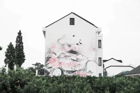 ▼建筑外墙上绘有传统风格的壁画,令人耳目一新