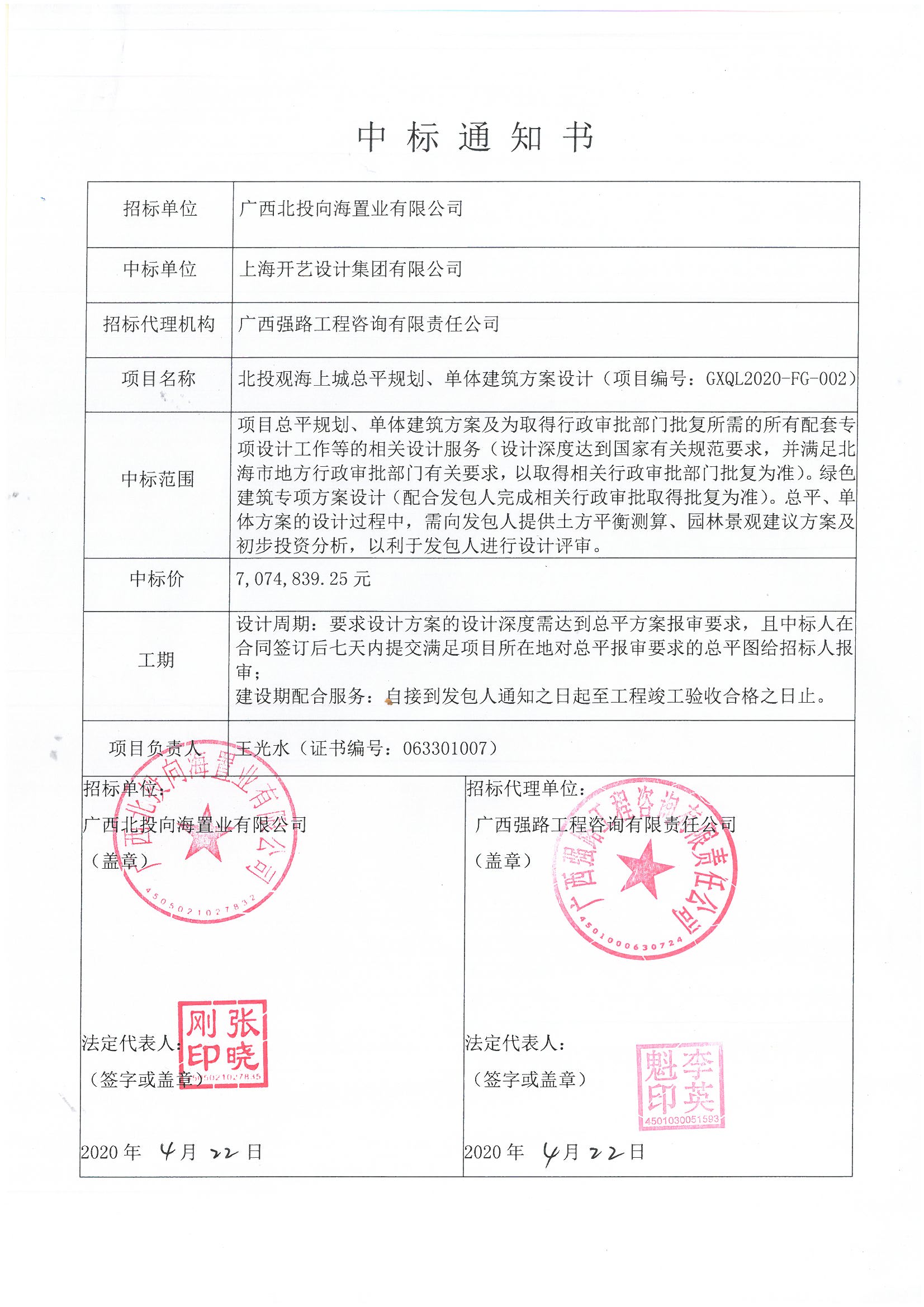 2020年4月22日,欧冠买球下载在“北投观海上城总平规划、单体建筑方案欧冠买球下载”项目的招标活动中成功中标。