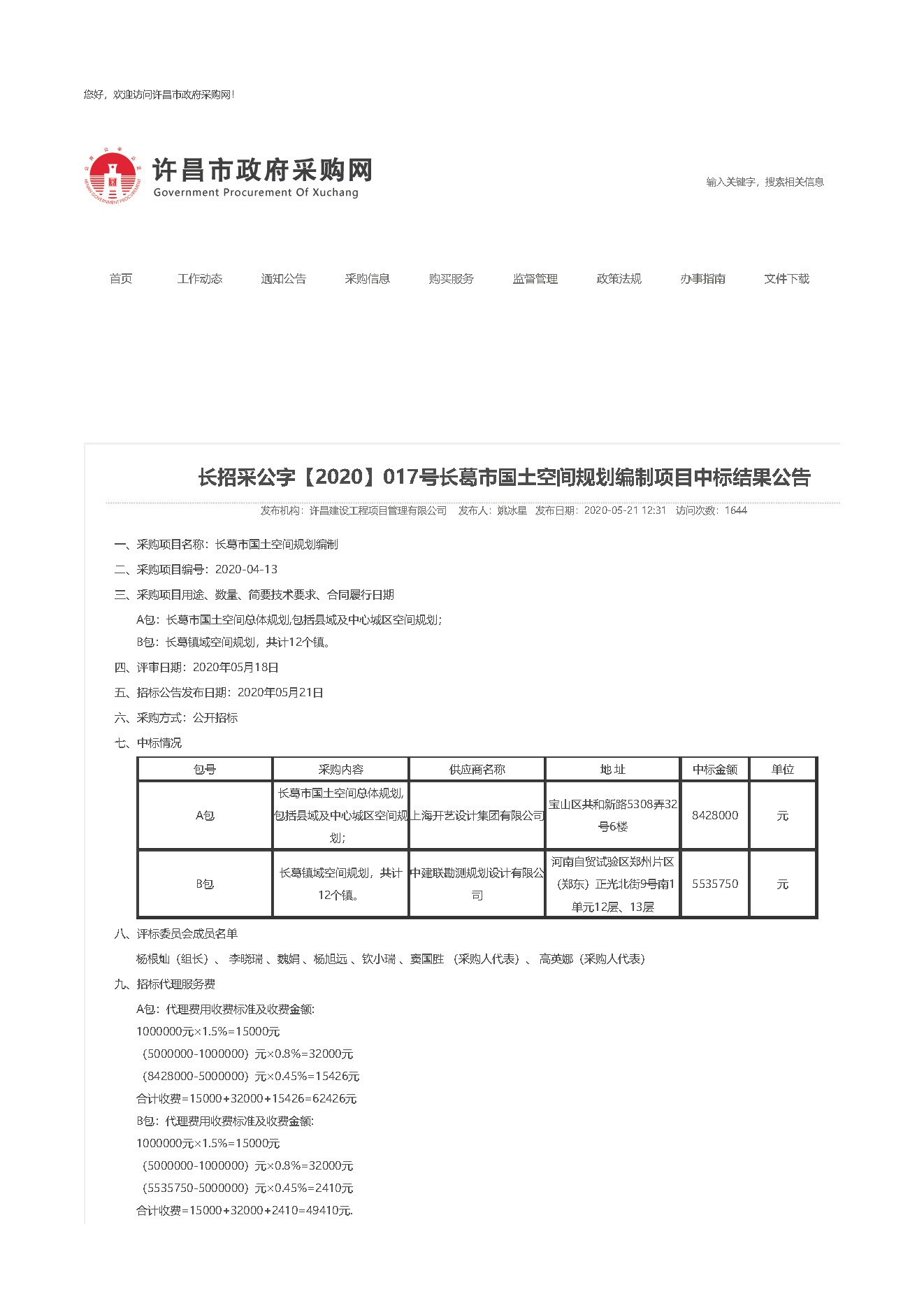 欧冠买球下载于2020年05月18日在许昌市长葛市国土空间编制项目的招标活动中成功中标。