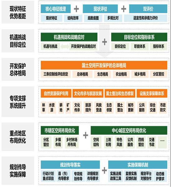 重点工作内容 一、主体功能区规划、土地利用总体规划、城镇总体规划的实施评估评价 全面评估现行主体功能区规划、城乡规划、土地利用规划等国土空间规划的实施情况,总结成效、分析问题,明确本次规划的重点,提出国土空间开发保护格局优化的建议,为规划编制提供借鉴和参考。 二、资源环境承载能力和国土空间开发适宜性评价 “资源环境承载能力评价”和“国土空间开发适宜性评价”的提出是生态文明新时代坚持生态优先、绿色发展的重要前提,是摸清资源利用上限与环境质量底线的重要举措,更是划定“三区三线”、优化国土空间格局的基本依据。