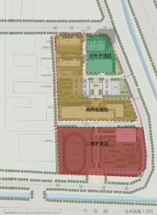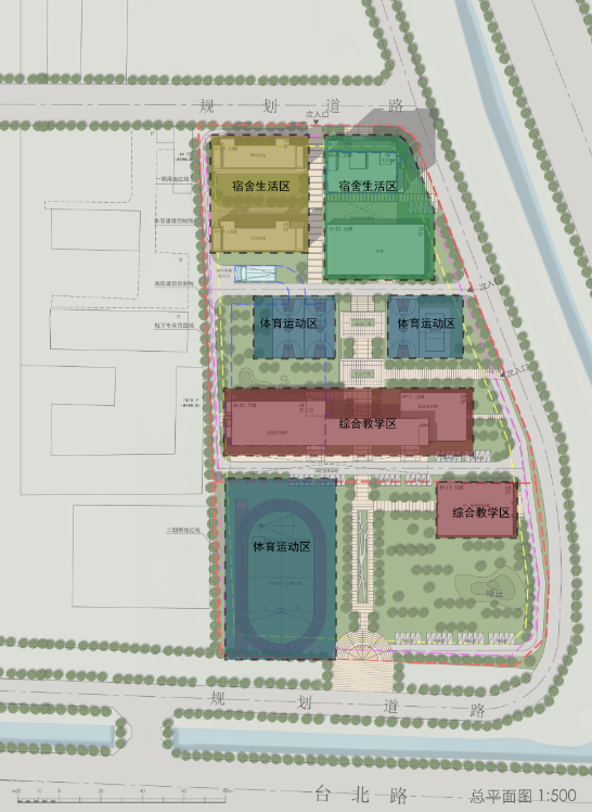 | 本项目为台儿庄区职业中专实训基地扩建项目,分两期进行建设。基地位于枣庄市台儿庄区,东临城市主干道运河大道,西临广源路,南临主干道台北路,地理位置较为静谧,交通条件便利。基地东侧和南侧紧靠景观河道,自然景观优越。总用地面积35742㎡,总建筑面积34287.95㎡。本项目由欧冠买球下载刘敏团队负责欧冠买球下载。