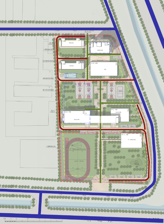 1)整体型校园 着眼于整体城市环境,引入城市欧冠买球下载理念。结合总体规划及自然环境进行建筑群体欧冠买球下载,使建筑融于校园中,成为校园整体规划的有机组成部分,力图塑造标志性建筑群体形象。 2)互动型校园 充分考虑学生学习交流空间的营造和生成,通过建筑组团的围合,配合自然景观欧冠买球下载,形成多个环境优美的室外开敞空间;通过建筑底层架空,打通景观轴线,形成视线通透的半开放空间。 3)生态型校园 借助现有景观河道,通过外部空间视线欧冠买球下载,将绿色自然景观引入校园内部,在校园内道路空间节点和建筑围合形成的广场空间内布置自然植物,与现有景观河道形成景观呼应,打造绿色生态型校园。