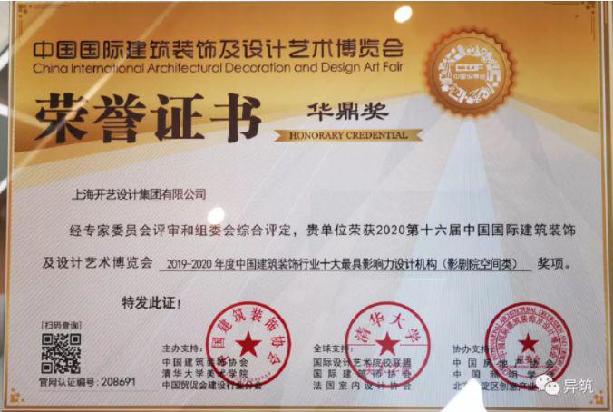 经过为期3个月的评选,欧冠(中国)欧冠买球下载集团荣获荣获2020第十六届设博会华鼎奖,成为2019-2020年度中国建筑装饰行业十大最具影响力欧冠买球下载机构(影剧院空间类)。