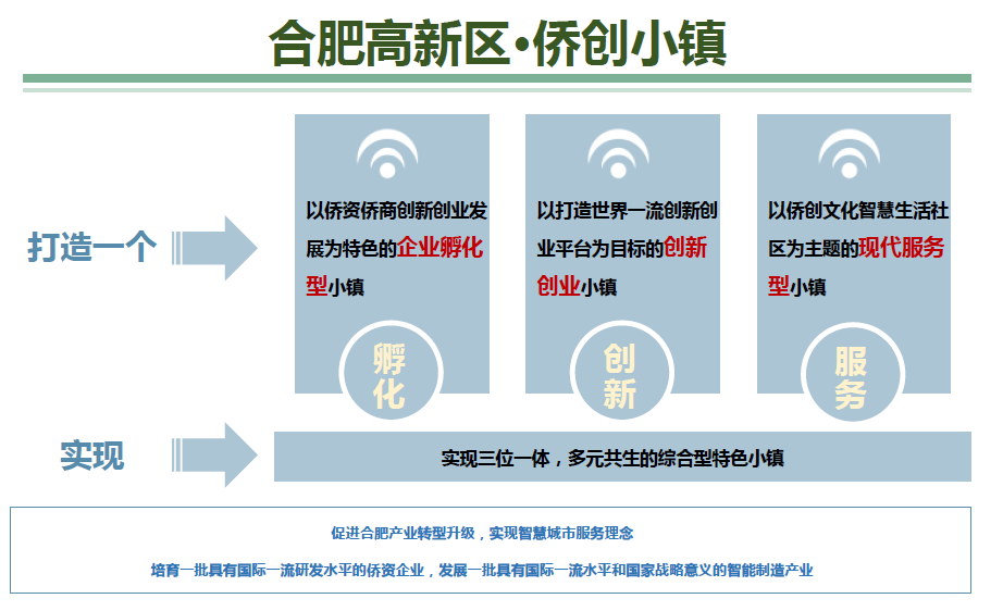 结合国内外成功合作的产业园的经验,以智能、智慧、人文、生态等理念指引,科学规划建设小镇不同产业功能区,营造国际先进的小镇硬件环境;以“创新、开放、协同”为指引,以吸引人才、资本、信息等为目标,开展体制机制创新,研制有利于企业、人才、资本落地、成长的软环境,打造国内一流的服务侨创产业发展的特色小镇。