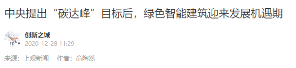 中央提出“碳达峰”目标后,绿色智能建筑迎来发展机遇期