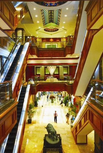 项目类型:宾馆建筑 欧冠买球下载年代:1996年 竣工期:1998年 建设地点:上海南京东路 总面积:59000 M2 欧冠买球下载说明:南新雅大酒店是上海南京路步行街上以典雅高贵而著称的五星级酒店。前身由上海华东建筑欧冠买球下载院欧冠买球下载,但96-98年两年中,我们对其室内装饰都做了重新改造,使其外观焕然一新,内部更加富丽堂皇。2003年的加层改造不但在高度上增加了5层,而且因优美的顶部处理手法使整个建筑在著名的南京路上更加熠熠生辉。这次改造的最大特色是三个中庭:裙房的多功能厅中庭贯穿东西连接了南京路和九江路;中部客房的雅典娜中庭和顶部行政房的“88中庭”都是极大提高了酒店的高贵气质。